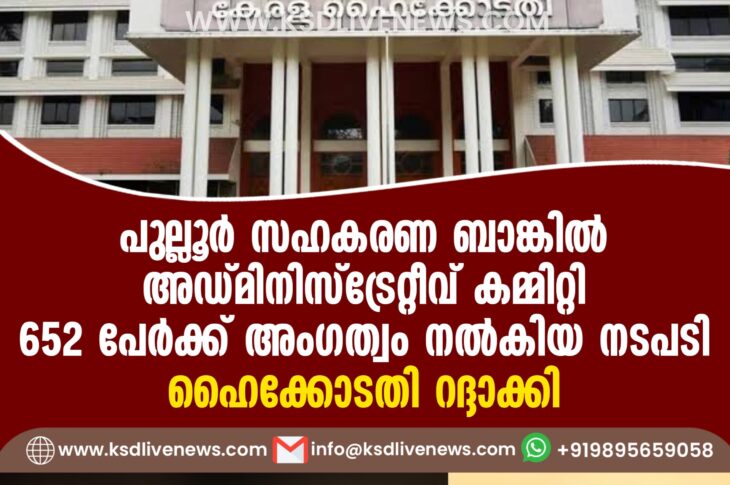 കേരളം പുല്ലൂർ സഹകരണ ബാങ്കിൽ അഡ്മിനിസ്ട്രേറ്റീവ് കമ്മിറ്റി 652 പേർക്ക് അംഗത്വം നൽകിയ നടപടി റദ്ദാക്കിJanuary 15, 2025