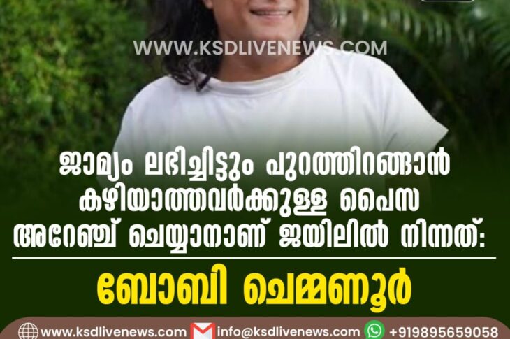 കേരളം ജാമ്യം ലഭിച്ചിട്ടും പുറത്തിറങ്ങാൻ കഴിയാത്തവർക്കുള്ള പൈസ അറേഞ്ച് ചെയ്യാനാണ് ജയിലിൽ നിന്നത്: ബോബിJanuary 15, 2025