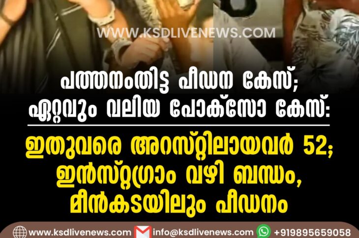 കേരളം പത്തനംതിട്ട പീഡന കേസ്;ഏറ്റവും വലിയ പോക്സോ കേസ്, ഇതുവരെ അറസ്റ്റിലായവര് 52; ഇന്സ്റ്റഗ്രാം വഴി ബന്ധം, മീന്കടയിലും പീഡനംJanuary 16, 2025