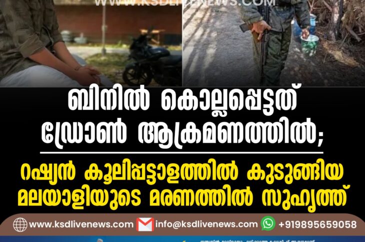 കേരളം ബിനില് കൊല്ലപ്പെട്ടത് ഡ്രോണ് ആക്രമണത്തില്; റഷ്യൻ കൂലിപ്പട്ടാളത്തില് കുടുങ്ങിയ മലയാളിയുടെ മരണത്തില് സുഹൃത്ത്January 14, 2025