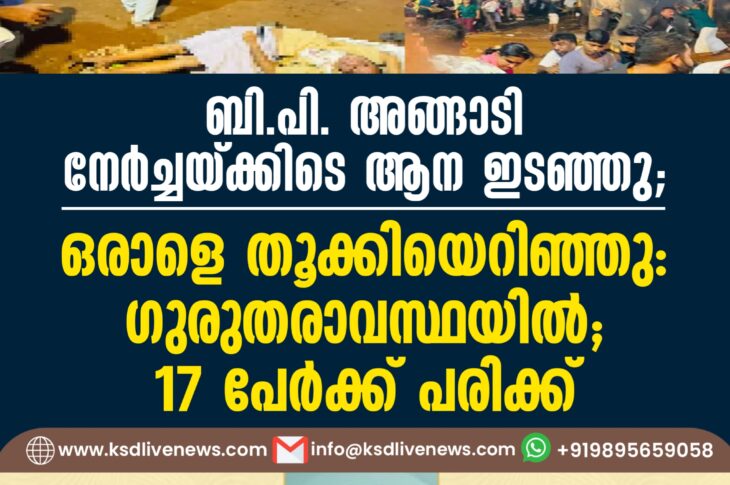 കേരളം ബി.പി. അങ്ങാടി നേർച്ചയ്ക്കിടെ ആന ഇടഞ്ഞു; ഒരാളെ തൂക്കിയെറിഞ്ഞു: ഗുരുതരാവസ്ഥയില്; 17 പേര്ക്ക് പരിക്ക്January 8, 2025