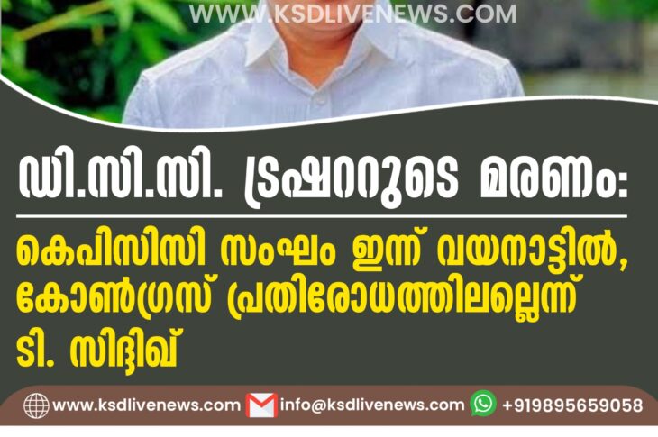 കേരളം ഡി.സി.സി. ട്രഷററുടെ മരണം: കെപിസിസി സംഘം ഇന്ന് വയനാട്ടിൽ, കോൺഗ്രസ് പ്രതിരോധത്തിലല്ലെന്ന് ടി.സിദ്ദിഖ്January 8, 2025