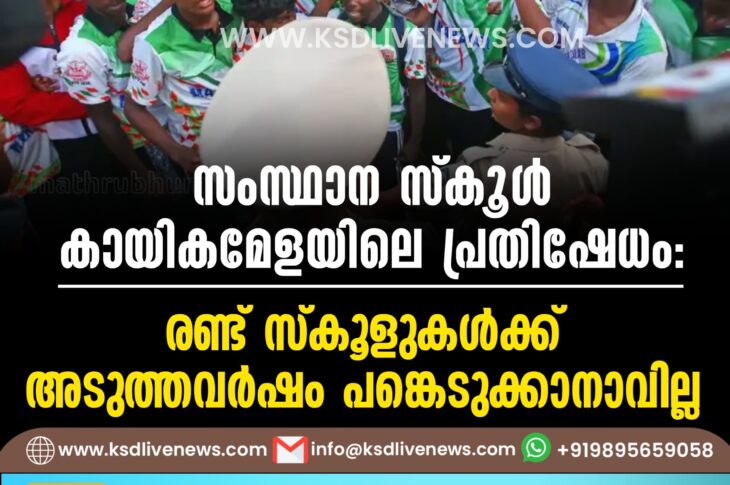 കേരളം സംസ്ഥാന സ്കൂൾ കായികമേളയിലെ പ്രതിഷേധം, രണ്ട് സ്കൂളുകൾക്ക് അടുത്തവർഷം പങ്കെടുക്കാനാവില്ലJanuary 2, 2025