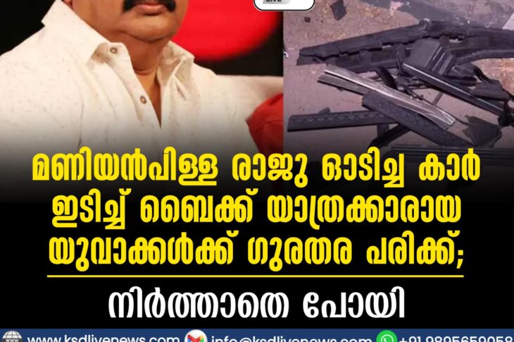 കേരളം മണിയൻപിള്ള രാജു ഓടിച്ച കാർ ഇടിച്ച് ബൈക്ക് യാത്രക്കാരായ യുവാക്കൾക്ക് ഗുരതര പരിക്ക്; നിർത്താതെ പോയിFebruary 6, 2026