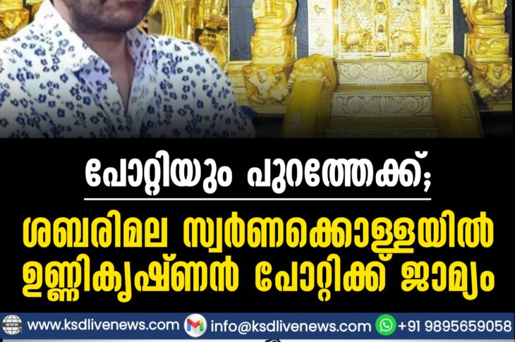 കേരളം പോറ്റിയും പുറത്തേക്ക്; ശബരിമല സ്വര്ണക്കൊള്ളയില് ഉണ്ണികൃഷ്ണന് പോറ്റിക്ക് ജാമ്യംFebruary 5, 2026