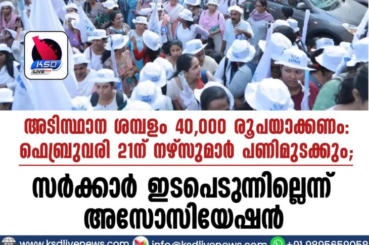 കേരളം അടിസ്ഥാന ശമ്പളം 40,000 രൂപയാക്കണം: ഫെബ്രുവരി 21ന് നഴ്സുമാര് പണിമുടക്കും; സര്ക്കാര് ഇടപെടുന്നില്ലെന്ന് അസോസിയേഷൻFebruary 5, 2026