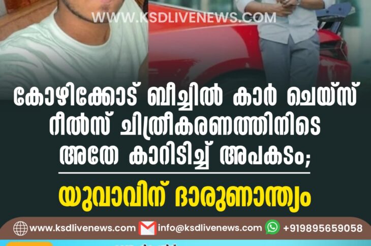 കേരളം കോഴിക്കോട് ബീച്ചിൽ കാർ ചെയ്സ് റീൽസ് ചിത്രീകരണത്തിനിടെ അതേ കാറിടിച്ച് അപകടം; യുവാവിന് ദാരുണാന്ത്യംDecember 10, 2024