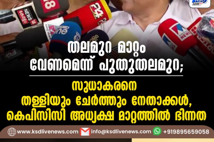 കേരളം തലമുറ മാറ്റം വേണമെന്ന് പുതുതലമുറ; സുധാകരനെ തള്ളിയും ചേര്ത്തും നേതാക്കള്, കെപിസിസി അധ്യക്ഷ മാറ്റത്തില് ഭിന്നതDecember 9, 2024