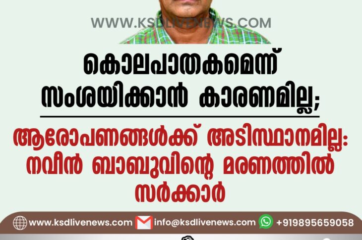 കേരളം കൊലപാതകമെന്ന് സംശയിക്കാൻ കാരണമില്ല; ആരോപണങ്ങൾക്ക് അടിസ്ഥാനമില്ല’: നവീൻ ബാബുവിന്റെ മരണത്തിൽ സർക്കാർDecember 7, 2024