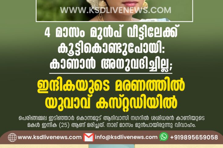 കേരളം 4 മാസം മുൻപ് വീട്ടിലേക്ക് കൂട്ടികൊണ്ടുപോയി, കാണാൻ അനുവദിച്ചില്ല; ഇന്ദികയുടെ മരണത്തിൽ യുവാവ് കസ്റ്റഡിയിൽDecember 7, 2024