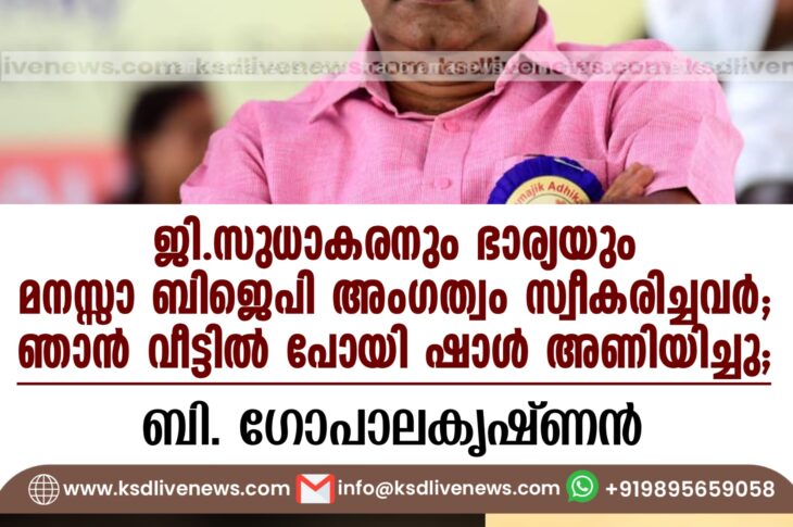 കേരളം ജി.സുധാകരനും ഭാര്യയും മനസ്സാ ബിജെപി അംഗത്വം സ്വീകരിച്ചവർ; ഞാൻ വീട്ടിൽ പോയി ഷാൾ അണിയിച്ചു; ബി.ഗോപാലകൃഷ്ണൻDecember 2, 2024