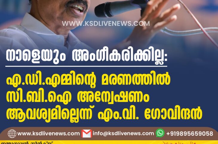 കേരളം നാളെയും അംഗീകരിക്കില്ല: എ.ഡി.എമ്മിന്റെ മരണത്തിൽ സി.ബി.ഐ അന്വേഷണം ആവശ്യമില്ലെന്ന് എം.വി. ഗോവിന്ദൻNovember 27, 2024