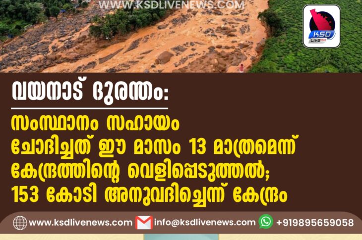 കേരളം വയനാട് ദുരന്തം: സംസ്ഥാനം സഹായം ചോദിച്ചത് ഈ മാസം 13 മാത്രമെന്ന് കേന്ദ്രത്തിന്റെ വെളിപ്പെടുത്തല്; 153 കോടി അനുവദിച്ചെന്ന് കേന്ദ്രംNovember 22, 2024