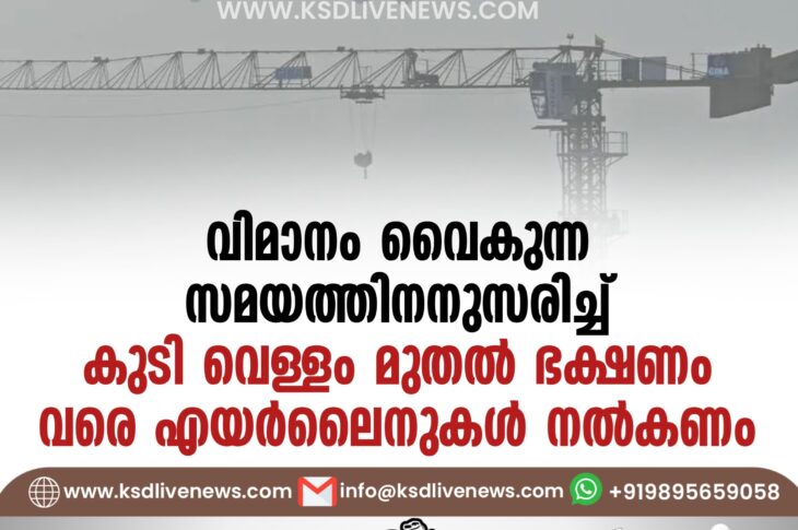 കേരളം വിമാനം വൈകുന്ന സമയത്തിനനുസരിച്ച് കുടിവെള്ളംമുതല് ഭക്ഷണംവരെ എയര്ലൈനുകള് നല്കണംNovember 22, 2024