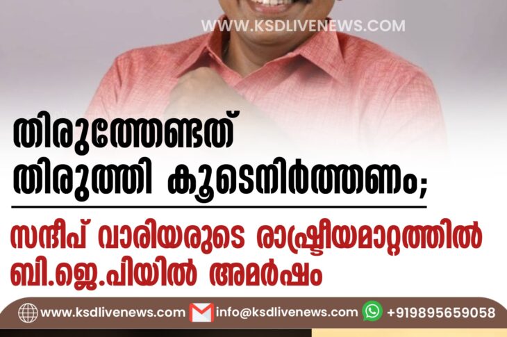 കേരളം തിരുത്തേണ്ടത് തിരുത്തി കൂടെനിര്ത്തണം’; സന്ദീപ് വാരിയരുടെ രാഷ്ട്രീയമാറ്റത്തില് ബിജെപിയില് അമര്ഷംNovember 19, 2024