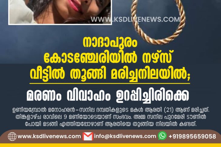 കേരളം നാദാപുരം കോടഞ്ചേരിയിൽ നഴ്സ് വീട്ടിൽ തൂങ്ങി മരിച്ചനിലയിൽ; മരണം വിവാഹം ഉറപ്പിച്ചിരിക്കെNovember 19, 2024