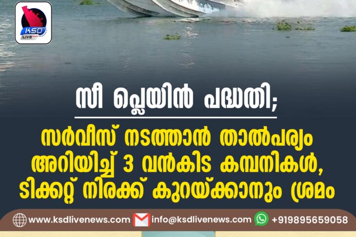 കേരളം സീ പ്ലെയിൻ പദ്ധതി; സര്വീസ് നടത്താൻ താല്പര്യം അറിയിച്ച് 3 വൻകിട കമ്പനികള്, ടിക്കറ്റ് നിരക്ക് കുറയ്ക്കാനും ശ്രമംNovember 19, 2024