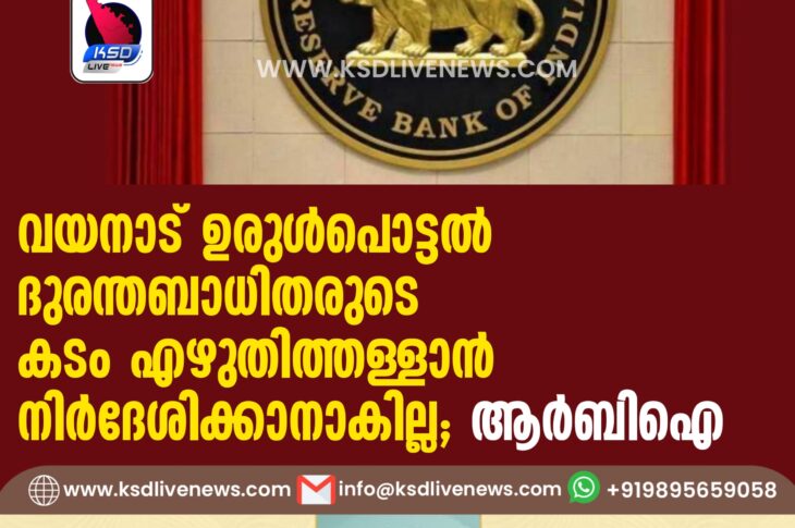 കേരളം വയനാട് ഉരുള്പൊട്ടല് ദുരന്തബാധിതരുടെ കടം എഴുതിത്തള്ളാന് നിര്ദേശിക്കാനാകില്ല; ആര്ബിഐNovember 16, 2024