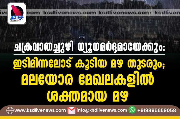 കേരളം ചക്രവാതച്ചുഴി ന്യൂനമര്ദ്ദമായേക്കും: ഇടിമിന്നലോട് കൂടിയ മഴ തുടരും; മലയോര മേഖലകളില് ശക്തമായ മഴNovember 9, 2024