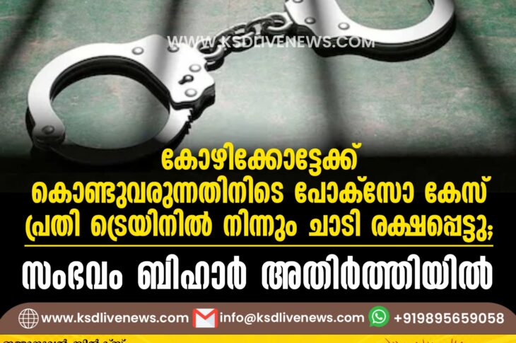 കേരളം കോഴിക്കോട്ടേക്ക് കൊണ്ടുവരുന്നതിനിടെ പോക്സോ കേസ് പ്രതി ട്രെയിനിൽ നിന്നും ചാടി രക്ഷപ്പെട്ടു; സംഭവം ബിഹാർ അതിർത്തിയിൽNovember 9, 2024