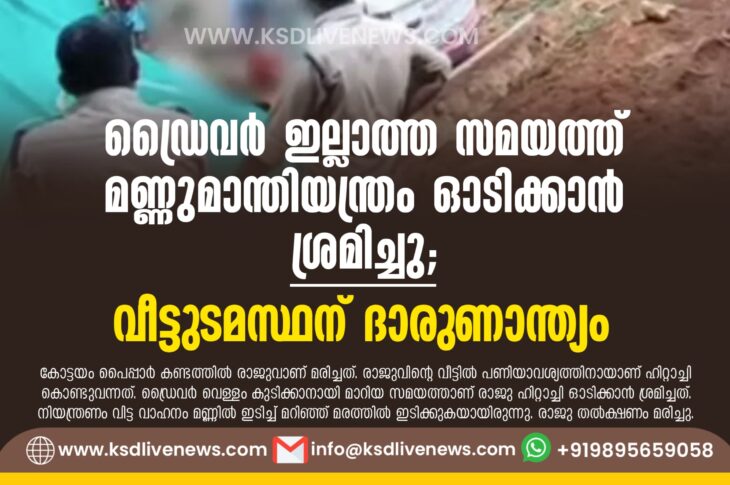 കേരളം ഡ്രൈവര് ഇല്ലാത്ത സമയത്ത് മണ്ണുമാന്തിയന്ത്രം ഓടിക്കാന് ശ്രമിച്ചു; വീട്ടുടമസ്ഥന് ദാരുണാന്ത്യംOctober 31, 2024
