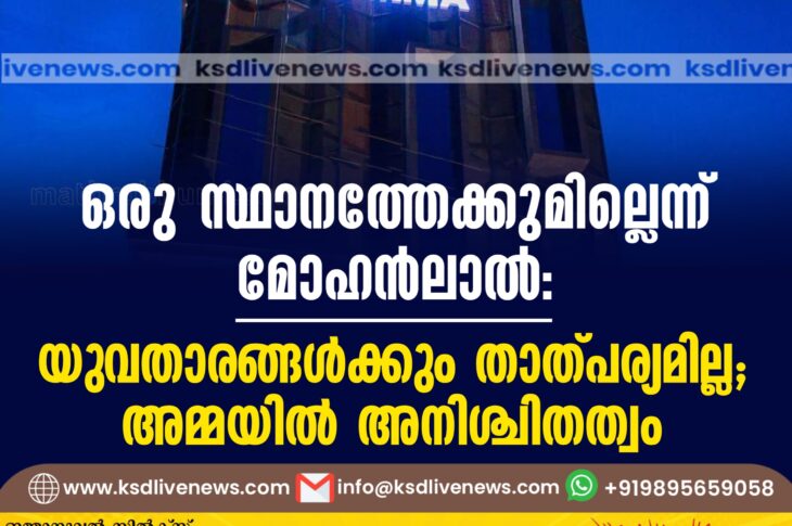 കേരളം ഒരു സ്ഥാനത്തേക്കുമില്ലെന്ന് മോഹൻലാല്: യുവതാരങ്ങള്ക്കും താത്പര്യമില്ല; അമ്മയില് അനിശ്ചിതത്വംOctober 19, 2024