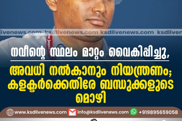 കേരളം നവീന്റെ സ്ഥലം മാറ്റം വൈകിപ്പിച്ചു, അവധി നൽകാനും നിയന്ത്രണം; കളക്ടർക്കെതിരേ ബന്ധുക്കളുടെ മൊഴിOctober 19, 2024