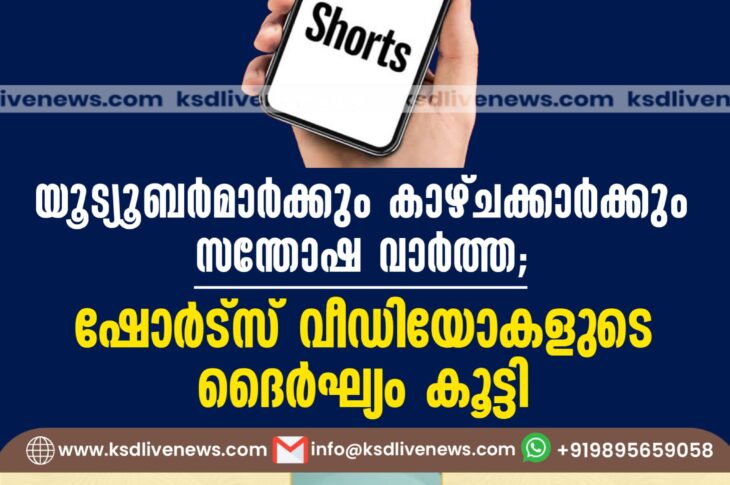 കേരളം യൂട്യൂബര്മാര്ക്കും കാഴ്ചക്കാര്ക്കും സന്തോഷ വാര്ത്ത; ഷോര്ട്സ് വീഡിയോകളുടെ ദൈര്ഘ്യം കൂട്ടിOctober 16, 2024