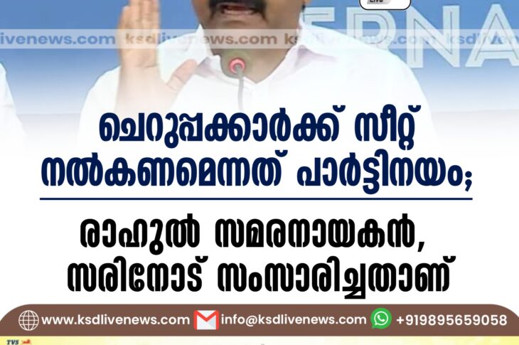 കേരളം ചെറുപ്പക്കാർക്ക് സീറ്റ് നൽകണമെന്നത് പാർട്ടിനയം; രാഹുൽ സമരനായകൻ, സരിനോട് സംസാരിച്ചതാണ്’October 16, 2024