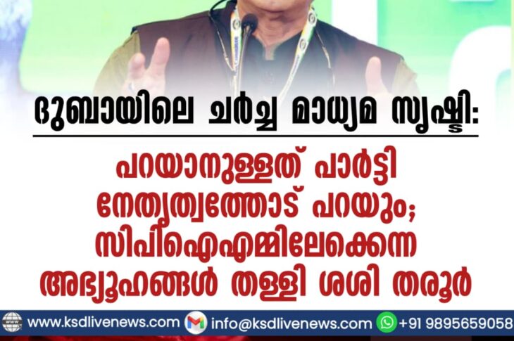 കേരളം ദുബായിലെ ചര്ച്ച മാധ്യമ സൃഷ്ടി: പറയാനുള്ളത് പാര്ട്ടി നേതൃത്വത്തോട് പറയും; സിപിഐഎമ്മിലേക്കെന്ന അഭ്യൂഹങ്ങള് തള്ളി ശശി തരൂര്January 28, 2026