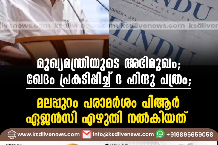 കേരളംദേശീയം മുഖ്യമന്ത്രിയുടെ അഭിമുഖം: ഖേദം പ്രകടിപ്പിച്ച് ‘ദ ഹിന്ദു’ പത്രം; ‘മലപ്പുറം പരാമര്ശം പിആര് ഏജൻസി എഴുതി നല്കിയത്’October 1, 2024