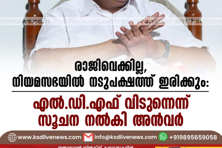 കേരളം രാജിവെക്കില്ല, നിയമസഭയിൽ നടുപക്ഷത്ത് ഇരിക്കും’; എൽഡിഎഫ് വിടുന്നെന്ന് സൂചന നൽകി അൻവർSeptember 26, 2024