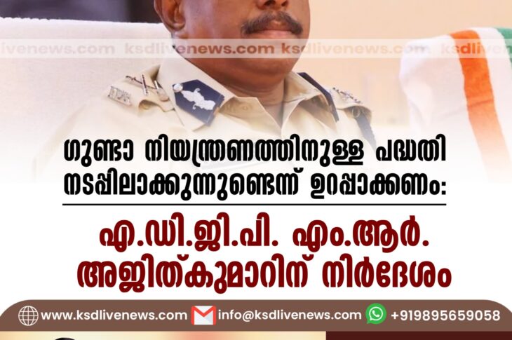 കേരളം ഗുണ്ടാ നിയന്ത്രണത്തിനുള്ള പദ്ധതി നടപ്പിലാക്കുന്നുണ്ടെന്ന് ഉറപ്പാക്കണം: എ.ഡി.ജി.പി. എം.ആർ. അജിത്കുമാറിന് നിർദേശംSeptember 26, 2024