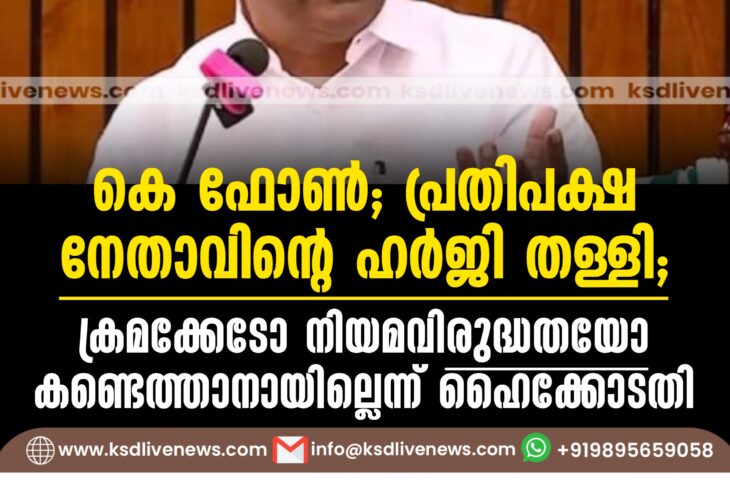 കേരളം കെ ഫോൺ; പ്രതിപക്ഷനേതാവിന്റെ ഹർജി തള്ളി; ക്രമക്കേടോ നിയമവിരുദ്ധതയോ കണ്ടെത്താനായില്ലെന്ന് ഹൈക്കോടതിSeptember 13, 2024
