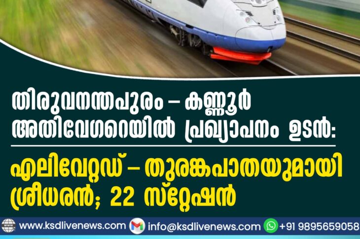 കേരളം തിരുവനന്തപുരം-കണ്ണൂർ അതിവേഗറെയിൽ പ്രഖ്യാപനം ഉടൻ: എലിവേറ്റഡ്-തുരങ്കപാതയുമായി ശ്രീധരൻ; 22 സ്റ്റേഷൻJanuary 24, 2026