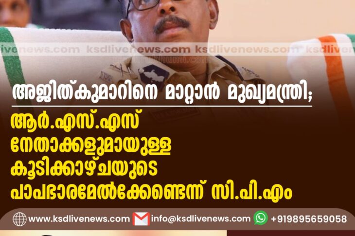 കേരളം അജിത്കുമാറിനെ മാറ്റാൻ മുഖ്യമന്ത്രി; ആർ.എസ്.എസ് നേതാക്കളുമായുള്ള കൂടിക്കാഴ്ചയുടെ പാപഭാരമേല്ക്കേണ്ടെന്ന് സി.പി.എംSeptember 9, 2024