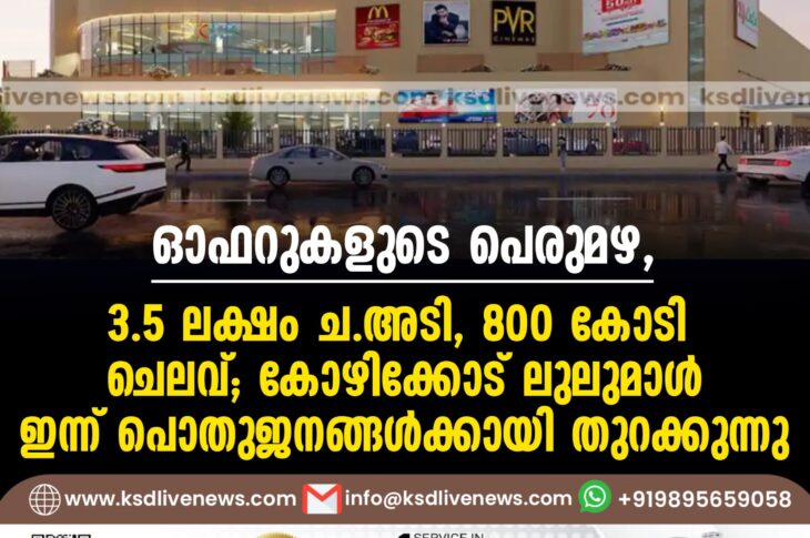 കേരളം ഓഫറുകളുടെ പെരുമഴ, 3.5 ലക്ഷം ച.അടി, 800 കോടി ചെലവ്; കോഴിക്കോട് ലുലുമാള് ഇന്ന് പൊതുജനങ്ങള്ക്കായി തുറക്കുന്നുSeptember 9, 2024