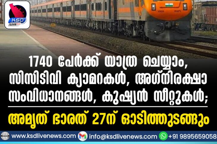 കേരളം 1740 പേര്ക്ക് യാത്ര ചെയ്യാം; സിസിടിവി ക്യാമറകള്, അഗ്നിരക്ഷാ സംവിധാനങ്ങള്, കുഷ്യന് സീറ്റുകള്; അമൃത് ഭാരത് 27ന് ഓടിത്തുടങ്ങുംJanuary 23, 2026