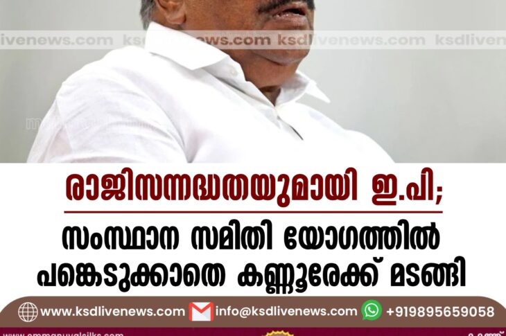 കേരളം രാജിസന്നദ്ധതയുമായി ഇ.പി; സംസ്ഥാന സമിതി യോഗത്തില് പങ്കെടുക്കാതെ കണ്ണൂരേക്ക് മടങ്ങിAugust 31, 2024