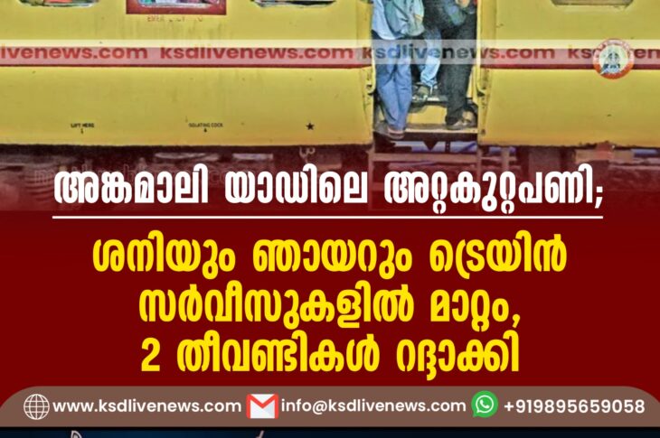 കേരളം അങ്കമാലി യാഡിലെ അറ്റകുറ്റപണി; ശനിയും ഞായറും ട്രെയിൻ സർവീസുകളിൽ മാറ്റം, 2 തീവണ്ടികള് റദ്ദാക്കിAugust 31, 2024