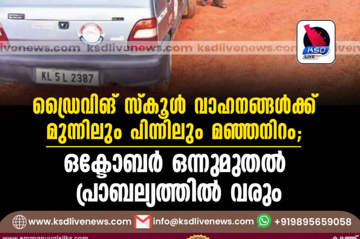 കേരളം ഡ്രൈവിങ് സ്കൂള് വാഹനങ്ങള്ക്ക് മുന്നിലും പിന്നിലും മഞ്ഞനിറം; ഒക്ടോബര് ഒന്നുമുതല് പ്രാബല്യത്തില് വരുംAugust 16, 2024