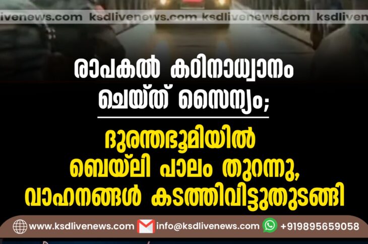 കേരളം രാപകൽ കഠിനാധ്വാനംചെയ്ത് സൈന്യം; ദുരന്തഭൂമിയിൽ ബെയ്ലി പാലം തുറന്നു, വാഹനങ്ങൾ കടത്തിവിട്ടുതുടങ്ങിAugust 1, 2024