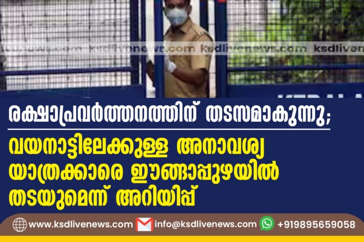 കേരളം രക്ഷാപ്രവർത്തനത്തിന് തടസമാകുന്നു; വയനാട്ടിലേക്കുള്ള അനാവശ്യ യാത്രക്കാരെ ഈങ്ങാപ്പുഴയിൽ തടയുമെന്ന് അറിയിപ്പ്August 1, 2024