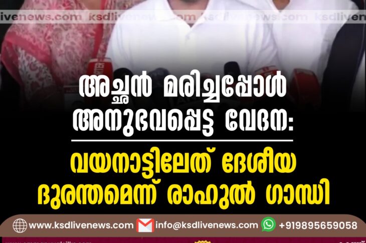 കേരളം അച്ഛൻ മരിച്ചപ്പോൾ അനുഭവപ്പെട്ട വേദന: വയനാട്ടിലേത് ദേശീയ ദുരന്തമെന്ന് രാഹുല് ഗാന്ധിAugust 1, 2024