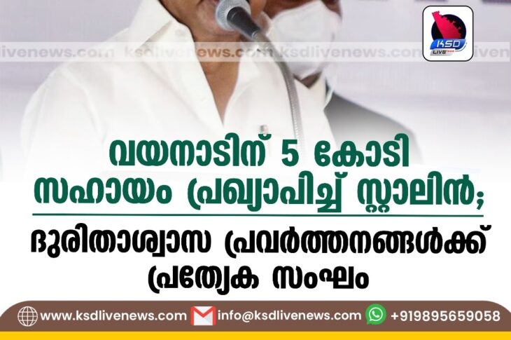 കേരളം വയനാടിന് 5 കോടി സഹായം പ്രഖ്യാപിച്ച് സ്റ്റാലിൻ; ദുരിതാശ്വാസ പ്രവർത്തനങ്ങൾക്ക് പ്രത്യേക സംഘംJuly 30, 2024