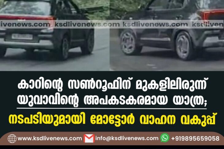 കേരളം കാറിന്റെ സണ്റൂഫിന് മുകളിലിരുന്ന് യുവാവിന്റെ അപകടകരമായ യാത്ര; നടപടിയുമായി മോട്ടോര് വാഹന വകുപ്പ് /VIDEOJuly 23, 2024