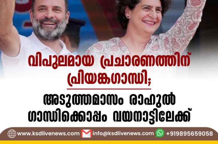 കേരളംദേശീയം വിപുലമായ പ്രചാരണത്തിന് പ്രിയങ്കഗാന്ധി; അടുത്തമാസം രാഹുൽ ഗാന്ധിക്കൊപ്പം വയനാട്ടിലേക്ക്June 18, 2024