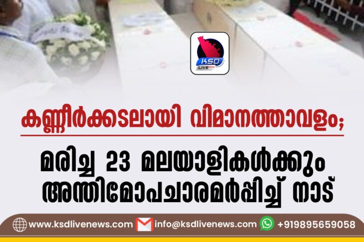 കേരളം കണ്ണീർക്കടലായി വിമാനത്താവളം; മരിച്ച 23 മലയാളികള്ക്കും അന്തിമോപചാരമര്പ്പിച്ച് നാട്June 14, 2024