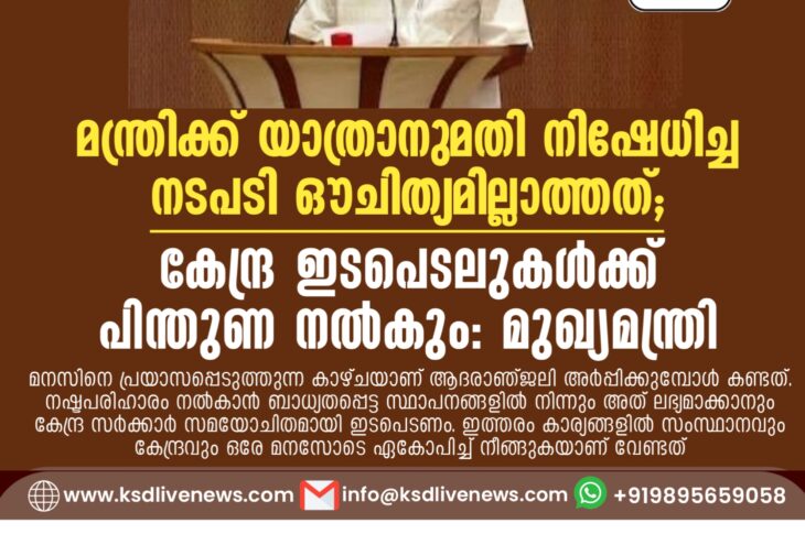 കേരളം മന്ത്രിക്ക് യാത്രാനുമതി നിഷേധിച്ച നടപടി ഔചിത്യമില്ലാത്തത്, കേന്ദ്ര ഇടപെടലുകൾക്ക് പിന്തുണ നൽകും: മുഖ്യമന്ത്രിJune 14, 2024