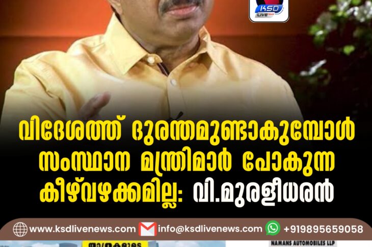 കേരളംദേശീയം വിദേശത്ത് ദുരന്തമുണ്ടാകുമ്പോൾ സംസ്ഥാന മന്ത്രിമാർ പോകുന്ന കീഴ്വഴക്കമില്ല: വി.മുരളീധരൻJune 14, 2024